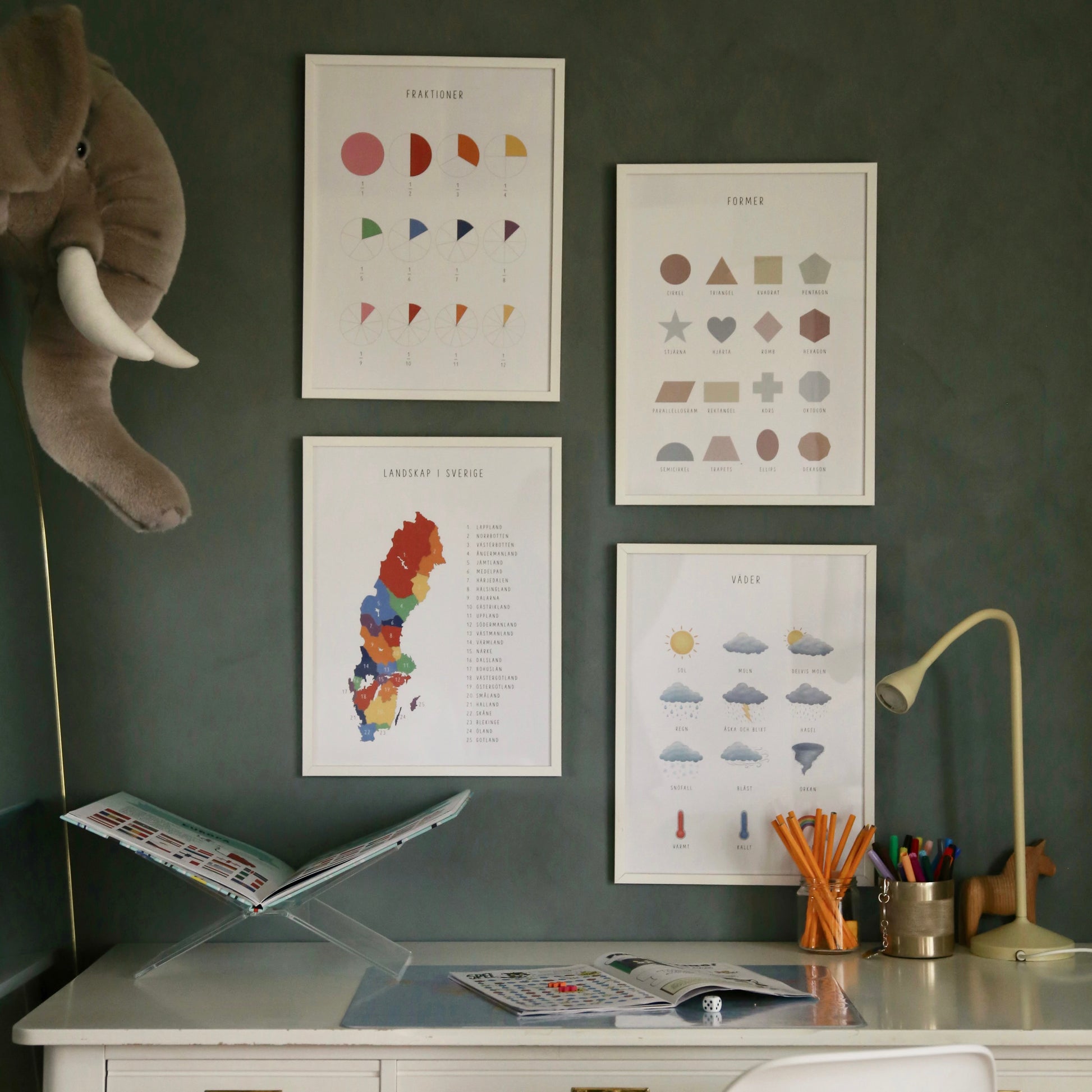 Att förstå fraktioner tidigt skapar en stabil grund för framtida mattekunskaper. Många barn uppskattar att lära sig detta steg för steg — från grunden — för att sedan kunna räkna mer avancerat. Postern kan användas både hemma och i skolan som pedagogiskt stöd eller dekorativ väggposter.